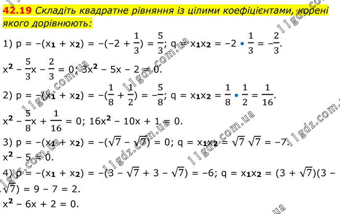 Тема 9. КВАДРАТНІ РІВНЯННЯ » 42.19