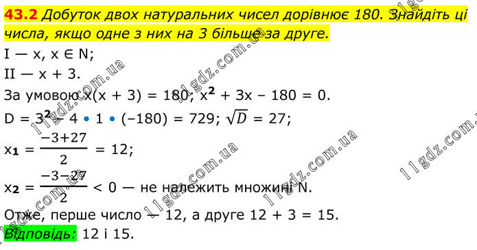 Тема 9. КВАДРАТНІ РІВНЯННЯ » 43.2