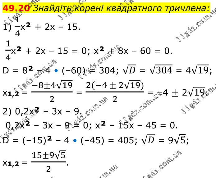 Тема 11. КВАДРАТНИЙ ТРИЧЛЕН » 49.20