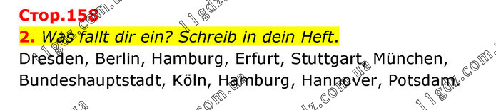 2. Was fallt dir ein? Schreib in dein Heft. Dresden, Berlin, Hamburg, Erfurt, Stuttgart, München, Bundeshauptstadt, Köln, Hamburg, Hannover, Potsdam.