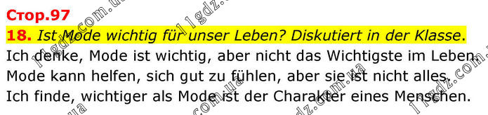 18. Ist Mode wichtig für unser Leben? Diskutiert in der Klasse. Ich denke, Mode ist wichtig, aber nicht das Wichtigste im Leben. Mode kann helfen, sich gut zu fühlen, aber sie ist nicht alles. Ich finde, wichtiger als Mode ist der Charakter eines Menschen.