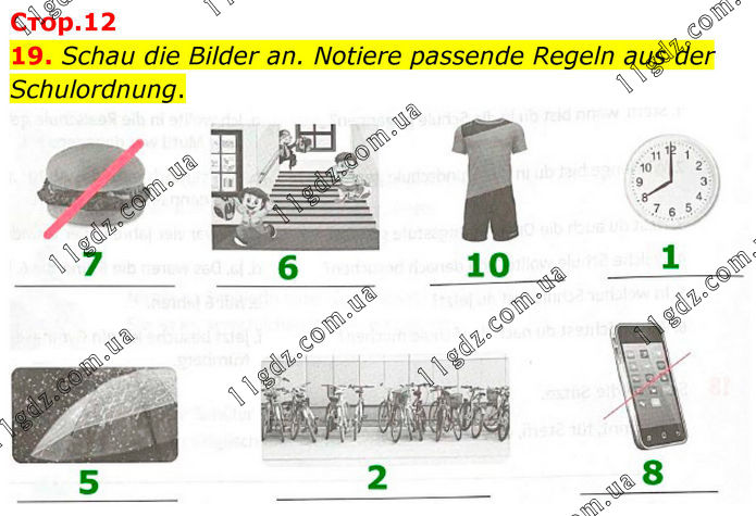 19. Schau die Bilder an. Notiere passende Regeln aus der Schulordnung.