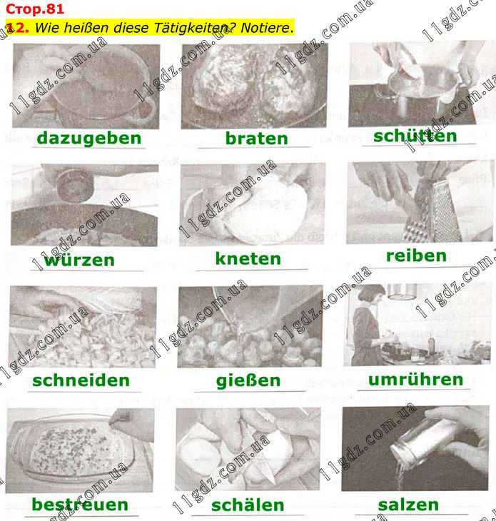 12. Wie heißen diese Tätigkeiten? Notiere.