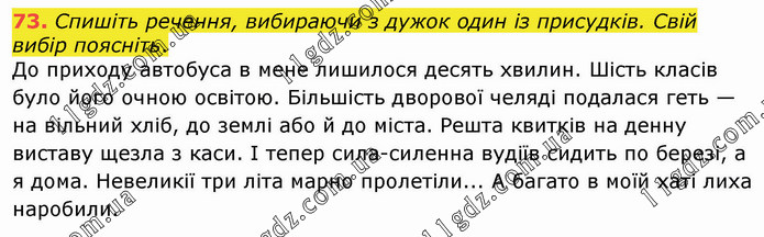 Спишіть речення, вибираючи з дужок один із присудків. Свій вибір поясніть. До приходу автобуса в мене лишилося десять хвилин. Шість класів було його очною освітою. Більшість дворової челяді подалася геть — на вільний хліб, до землі або й до міста. Решта квитків на денну виставу щезла з каси. І тепер сила-силенна вудіїв сидить по березі, а я дома. Невеликії три літа марно пролетіли... А багато в моїй хаті лиха наробили.