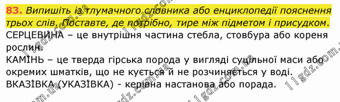 Випишіть із тлумачного словника або енциклопедії пояснення трьох слів. Поставте, де потрібно, тире між підметом і присудком.
