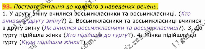 Поставте питання до кожного з наведених речень. 1. У другу зміну вчилися восьмикласники та восьмикласниці. (Хто вчився у другу зміну?) 2. Восьмикласники та восьмикласниці вчилися в другу зміну
