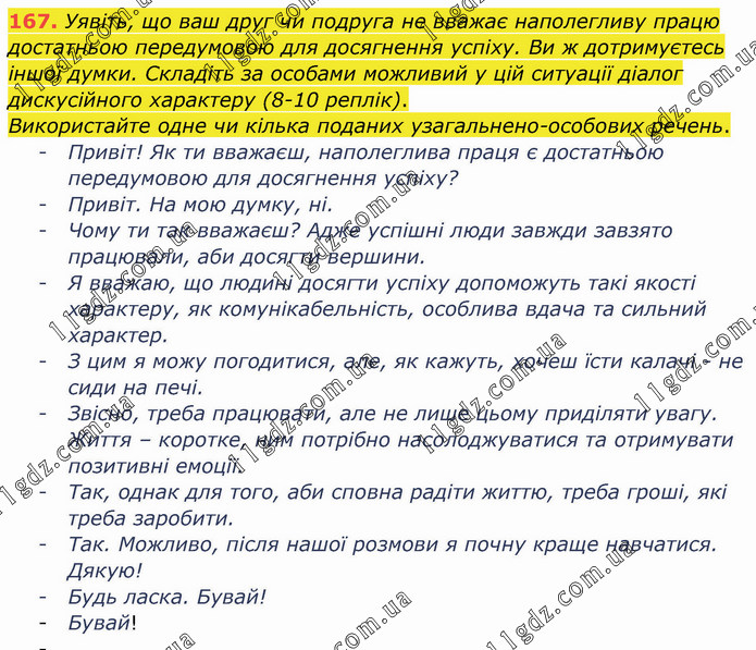 Уявіть, що ваш друг чи подруга не вважає наполегливу працю достатньою передумовою для досягнення успіху. Ви ж дотримуєтесь іншої думки. Складіть за особами можливий у цій ситуації діалог дискусійного характеру (8-10 реплік). Використайте одне чи кілька поданих узагальнено-особових речень.