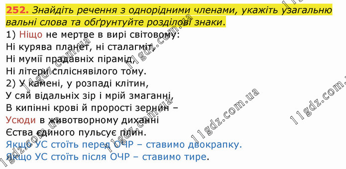Знайдіть речення з однорідними членами, укажіть узагальню вальні слова та обґрунтуйте розділові знаки. 1) Ніщо не мертве в вирі світовому: Ні курява планет, ні сталагміт, Ні мумії прадавніх пірамід,