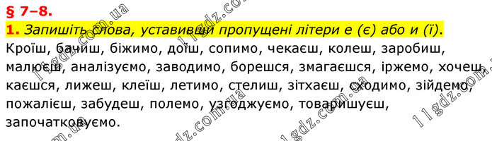 Запишіть слова, уставивши пропущені літери е (є) або и (ї). Кроїш, бачиш, біжимо, доїш, сопимо, чекаєш, колеш, заробиш, малюєш, аналізуємо, заводимо, борешся, змагаєшся, іржемо, хочеш, каєшся, лижеш, клеїш, летимо, стелиш, зітхаєш, сходимо, зійдемо, пожалієш, забудеш, полемо, узгоджуємо, товаришуєш, започатковуємо.