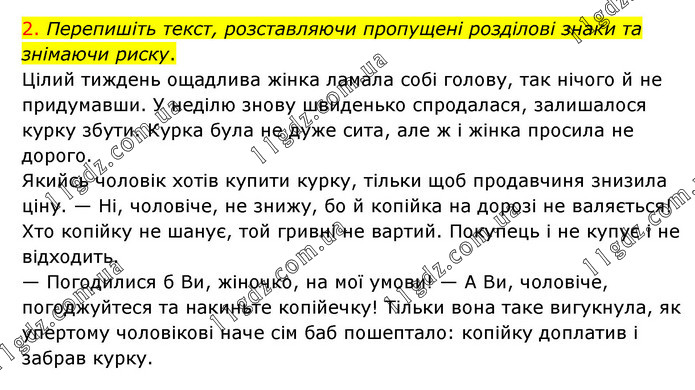 Перепишіть текст, розставляючи пропущені розділові знаки та знімаючи риску. Цілий тиждень ощадлива жінка ламала собі голову, так нічого й не придумавши. У неділю знову швиденько спродалася, залишалося курку збути. Курка була не дуже сита, але ж і жінка просила не дорого. Якийсь чоловік хотів купити курку, тільки щоб продавчиня знизила ціну. — Ні, чоловіче, не знижу, бо й копійка на дорозі не валяється! Хто копійку не шанує, той гривні не вартий. Покупець і не купує і не відходить. — Погодилися б Ви, жіночко, на мої умови! — А Ви, чоловіче, погоджуйтеся та накиньте копійечку! Тільки вона таке вигукнула, як упертому чоловікові наче сім баб пошептало: копійку доплатив і забрав курку.