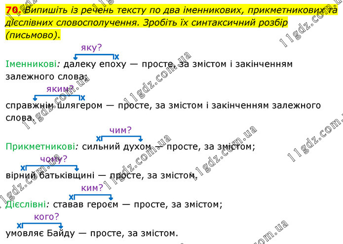 Випишіть із речень тексту по два іменникових, прикметникових та дієслівних словосполучення. Зробіть їх синтаксичний розбір (письмово).
