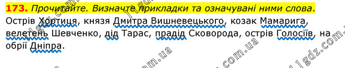 Прочитайте. Визначте прикладки та означувані ними слова. Острів Хортиця, князя Дмитра Вишневецького, козак Мамарига, велетень Шевченко, дід Тарас, прадід Сковорода, острів Голосіїв, на обрії Дніпра.