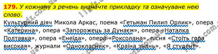 У кожному з речень визначте прикладку та означуване нею слово. Культурний діяч Микола Аркас, поема «Гетьман Пилип Орлик», опера «Катерина», опера «Запорожець за Дунаєм», опера «Наталка Полтавка», опера «Енеїда», опера «Роксолана», пісня «Стоїть гора високая», журнали «Однокласник», «Країна знань», «Я студент».