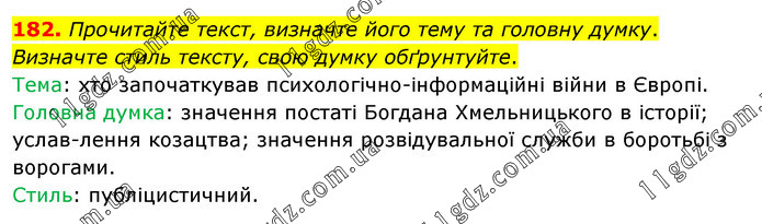 Прочитайте текст, визначте його тему та головну думку. Визначте стиль тексту, свою думку обґрунтуйте. Тема: хто започаткував психологічно-інформаційні війни в Європі. Головна думка: значення постаті Богдана Хмельницького в історії; уславлення козацтва; значення розвідувальної служби в боротьбі з ворогами. Стиль: публіцистичний.