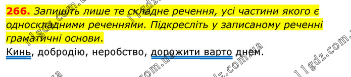 Запишіть лише те складне речення, усі частини якого є односкладними реченнями. Підкресліть у записаному реченні граматичні основи. Кинь, добродію, неробство, дорожити варто днем.