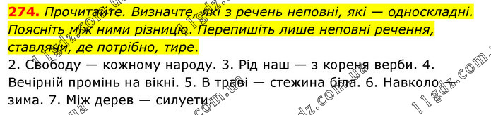 Прочитайте. Визначте, які з речень неповні, які — односкладні. Поясніть між ними різницю. Перепишіть лише неповні речення, ставлячи, де потрібно, тире. 2. Свободу — кожному народу. 3. Рід наш — з кореня верби. 4. Вечірній промінь на вікні. 5. В траві — стежина біла. 6. Навколо — зима. 7. Між дерев — силуети.
