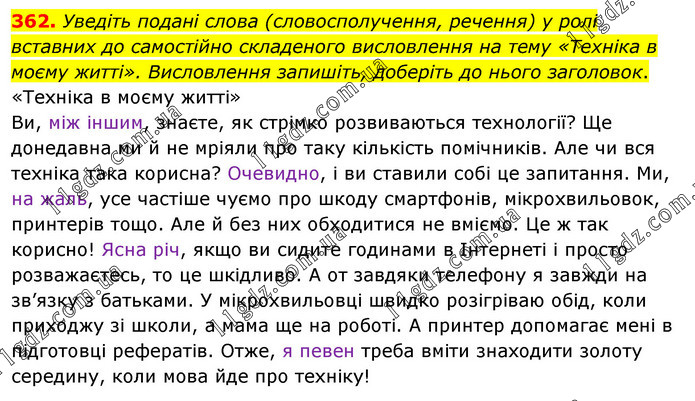 Уведіть подані слова (словосполучення, речення) у ролі вставних до самостійно складеного висловлення на тему «Техніка в моєму житті». Висловлення запишіть, доберіть до нього заголовок. «Техніка в моєму житті» Ви, між іншим, знаєте, як стрімко розвиваються технології? Ще донедавна ми й не мріяли про таку кількість помічників. Але чи вся техніка така корисна? Очевидно, і ви ставили собі це запитання. Ми, на жаль, усе частіше чуємо про шкоду смартфонів, мікрохвильовок, принтерів тощо. Але й без них обходитися не вміємо. Це ж так корисно! Ясна річ, якщо ви сидите годинами в Інтернеті і просто розважаєтесь, то це шкідливо. А от завдяки телефону я завжди на зв’язку з батьками. У мікрохвильовці швидко розігріваю обід, коли приходжу зі школи, а мама ще на роботі. А принтер допомагає мені в підготовці рефератів. Отже, я певен треба вміти знаходити золоту середину, коли мова йде про техніку!