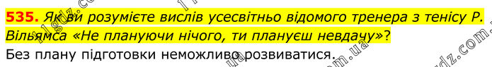 535. Як ви розумієте вислів усесвітньо відомого тренера з тенісу Р. Вільямса «Не плануючи нічого, ти плануєш невдачу»? Без плану підготовки неможливо розвиватися.