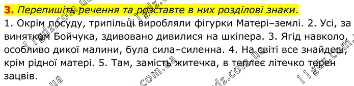 Перепишіть речення та розставте в них розділові знаки. 1. Окрім посуду, трипільці виробляли фігурки Матері–землі. 2. Усі, за винятком Бойчука, здивовано дивилися на шкіпера. 3. Ягід навколо, особливо дикої малини, була сила–силенна. 4. На світі все знайдеш, крім рідної матері. 5. Там, замість житечка, в теплеє літечко терен зацвів.