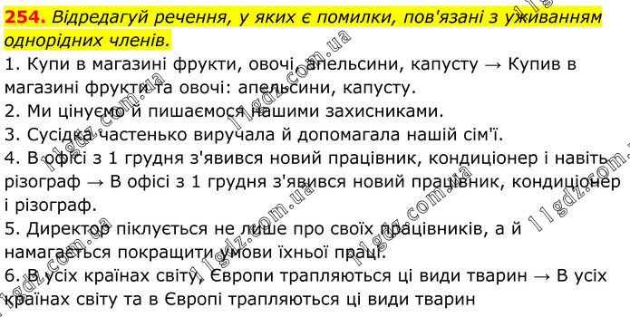 ОДНОРІДНІ ЧЛЕНИ РЕЧЕННЯ » 254