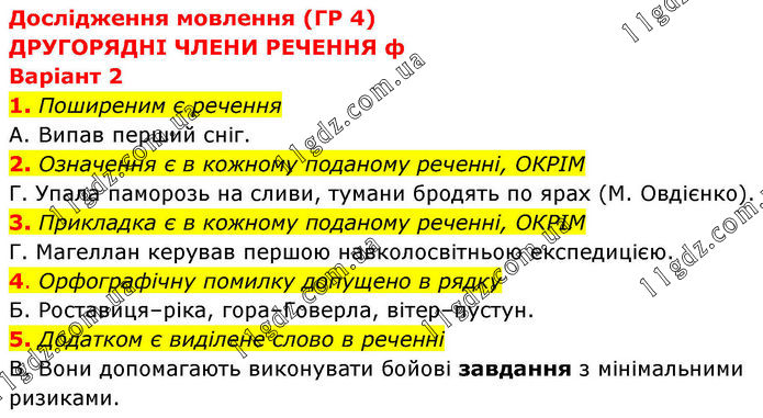 ДРУГОРЯДНІ ЧЛЕНИ РЕЧЕННЯ » В2 (1-5)