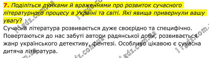 Поділіться думками й враженнями про розвиток сучасного літературного процесу в Україні та світі. Які явища привернули вашу увагу? Сучасна література розвивається дуже своєрідно та специфічно. Повертаються до нас забуті автори радянської доби, розвивається жанр українського детективу, фентезі. Особливо цікавою є сучасна дитяча література.