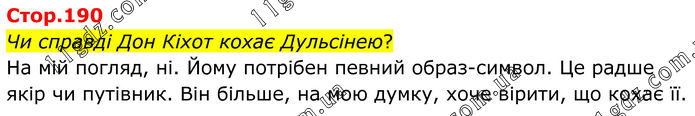 Чи справді Дон Кіхот кохає Дульсінею? На мій погляд, ні. Йому потрібен певний образ-символ. Це радше якір чи путівник. Він більше, на мою думку, хоче вірити, що кохає її.