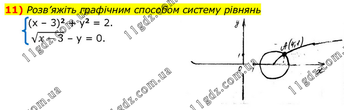 Розв’яжіть графічним способом систему рівнянь (x – 3)2 + y2 = 2. √(x-3) – y = 0.