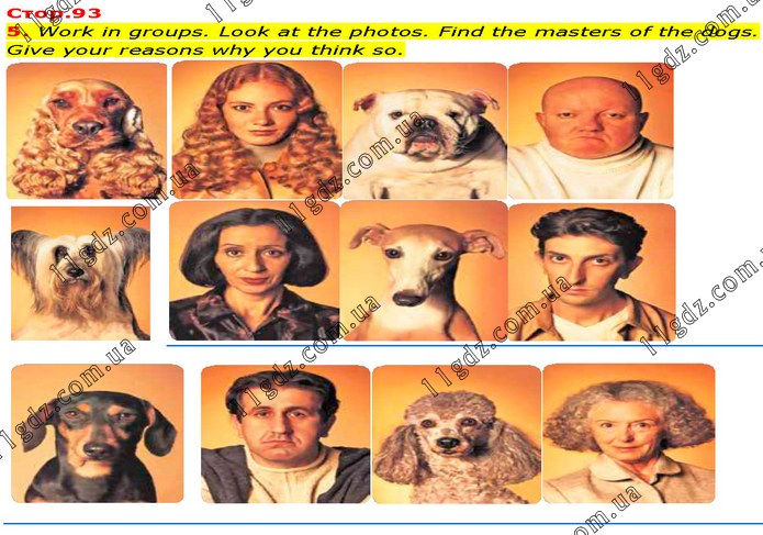Work in groups. Look at the photos. Find the masters of the dogs. Give your reasons why you think so.