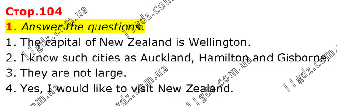 Answer the questions. 1. The capital of New Zealand is Wellington. 2. I know such cities as Auckland, Hamilton and Gisborne. 3. They are not large. 4. Yes, I would like to visit New Zealand.