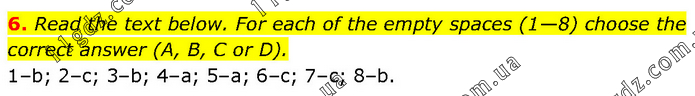 Read the text below. For each of the empty spaces (1—8) choose the correct answer (A, B, C or D). 1–b; 2–c; 3–b; 4–a; 5–a; 6–c; 7–c; 8–b.