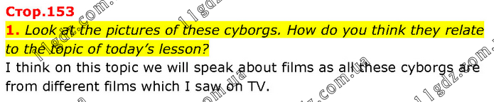 Look at the pictures of these cyborgs. How do you think they relate to the topic of today’s lesson? I think on this topic we will speak about films as all these cyborgs are from different films which I saw on TV.