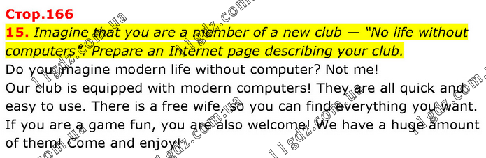Imagine that you are a member of a new club — “No life without computers”. Prepare an Internet page describing your club. Do you imagine modern life without computer? Not me! Our club is equipped with modern computers! They are all quick and easy to use. There is a free wife, so you can find everything you want. If you are a game fun, you are also welcome! We have a huge amount of them! Come and enjoy!