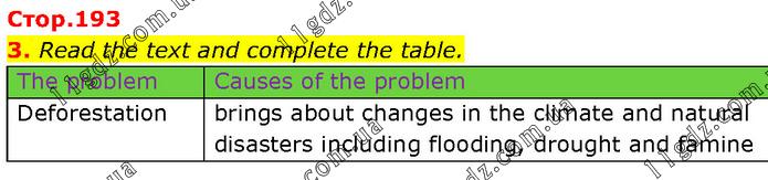 Read the text and complete the table. The problem Causes of the problem Deforestation brings about changes in the climate and natural disasters including flooding, drought and famine
