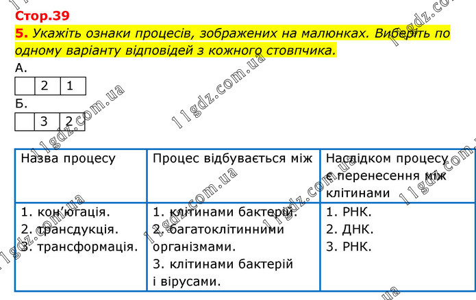 Укажіть ознаки процесів, зображених на малюнках. Виберіть по одному варіанту відповідей з кожного стовпчика.