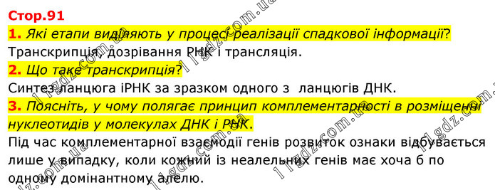 4. Збереження та реалізація спадкової інформації » Стр.91 (1-3)