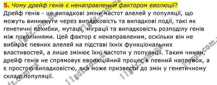 Чому дрейф генів є ненаправленим фактором еволюції? Дрейф генів - це випадкові зміни частот алелей у популяції, що можуть виникнути через випадковість та випадкові події, такі як генетичні похибки, мутації, міграції та випадковість розподілу генів між поколіннями. Цей фактор є ненаправленим, оскільки він не вибирає певних алелей на підставі їхніх функціональних властивостей, а лише змінює їхні частоти у популяції. Таким чином, дрейф генів не спрямовує еволюційний процес в певний напрямок, а є простою випадковістю, яка може призвести до змін у генетичному складі популяції.