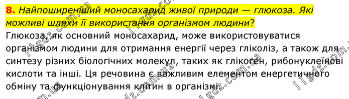 Найпоширеніший моносахарид живої природи — глюкоза. Які можливі шляхи її використання організмом людини? Глюкоза, як основний моносахарид, може використовуватися організмом людини для отримання енергії через гліколіз, а також для синтезу різних біологічних молекул, таких як глікоген, рибонуклеїнові кислоти та інші. Ця речовина є важливим елементом енергетичного обміну та функціонування клітин в організмі.