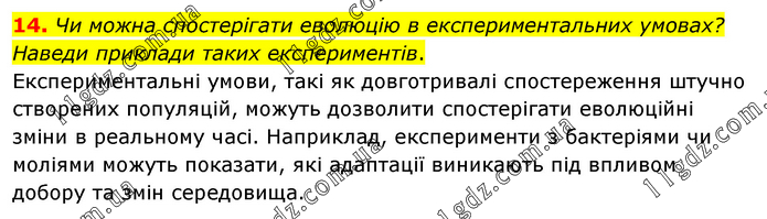 Чи можна спостерігати еволюцію в експериментальних умовах? Наведи приклади таких експериментів. Експериментальні умови, такі як довготривалі спостереження штучно створених популяцій, можуть дозволити спостерігати еволюційні зміни в реальному часі. Наприклад, експерименти з бактеріями чи моліями можуть показати, які адаптації виникають під впливом добору та змін середовища.