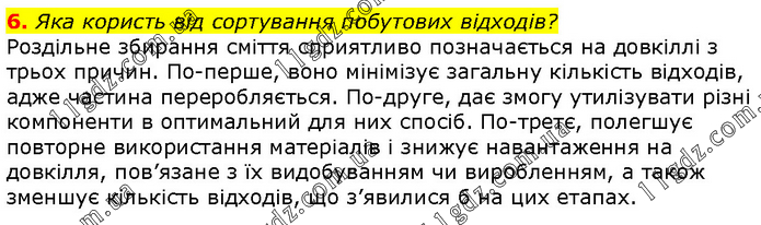 Яка користь від сортування побутових відходів? Роздільне збирання сміття сприятливо позначається на довкіллі з трьох причин. По-перше, воно мінімізує загальну кількість відходів, адже частина переробляється. По-друге, дає змогу утилізувати різні компоненти в оптимальний для них спосіб. По-третє, полегшує повторне використання матеріалів і знижує навантаження на довкілля, пов’язане з їх видобуванням чи виробленням, а також зменшує кількість відходів, що з’явилися б на цих етапах.
