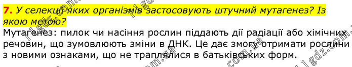 У селекції яких організмів застосовують штучний мутагенез? Із якою метою? Мутагенез: пилок чи насіння рослин піддають дії радіації або хімічних речовин, що зумовлюють зміни в ДНК. Це дає змогу отримати рослини з новими ознаками, що не траплялися в батьківських форм.