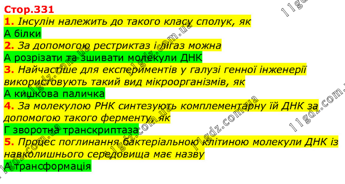 РОЗДІЛ 9. БІОЛОГІЯ ЯК ОСНОВА БІОТЕХНОЛОГІЇ » Стр.331 (1-5)