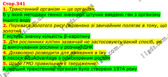 РОЗДІЛ 9. БІОЛОГІЯ ЯК ОСНОВА БІОТЕХНОЛОГІЇ » Стр.341 (1-5)