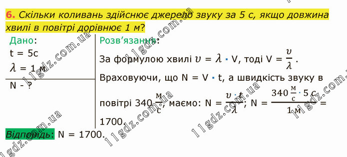 Скільки коливань здійснює джерело звуку за 5 с, якщо довжина хвилі в повітрі дорівнює 1 м?