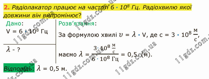 Радіолакатор працює на частоті 6 ∙ 108 Гц. Радіохвилю якої довжини він випромінює?
