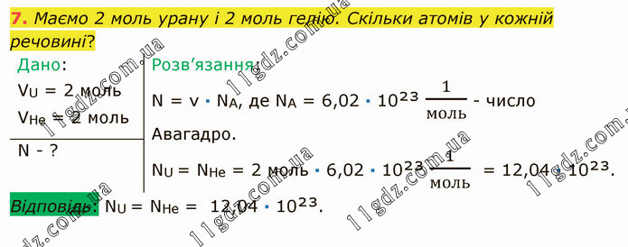 Маємо 2 моль урану і 2 моль гелію. Скільки атомів у кожній речовині?