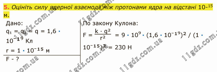 Оцініть силу ядерної взаємодії між протонами ядра на відстані 10-15 м.