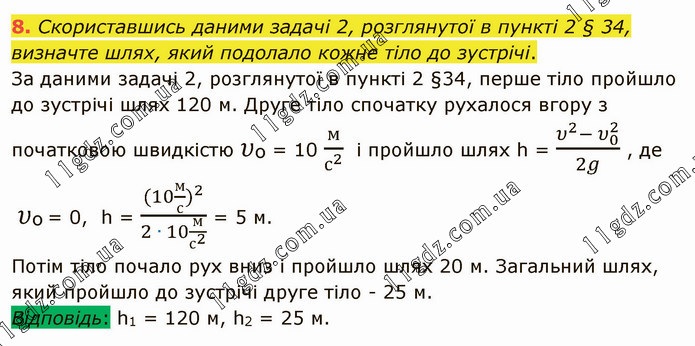 Скориставшись даними задачі 2, розглянутої в пункті 2 § 34, визначте шлях, який подолало кожне тіло до зустрічі.