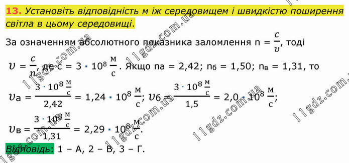 Установіть відповідність м іж середовищем і швидкістю поширення світла в цьому середовищі.