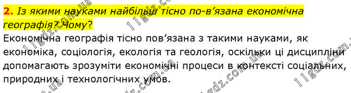 Із якими науками найбільш тісно по-в’язана економічна географія? Чому? Економічна географія тісно пов’язана з такими науками, як економіка, соціологія, екологія та геологія, оскільки ці дисципліни допомагають зрозуміти економічні процеси в контексті соціальних, природних і технологічних умов.